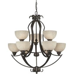 Forte Lighting 2356-09-32 Traditional 9-Light Chandelier features a rich Antique Bronze finish complemented by Tapioca glass in an classic design that will enhance any decor theme with style and grace for many years to come. 2356-09-32 is 32-Inch in diameter by 35-Inch high, and is supplied with 6-Feet of chain and 10-Feet of wire. 2356-09-32 comes one per package, and requires nine 100-Watt medium base incandescent but-Pound, not included, dimmable using a standard incandescent dimmer. Since the company was founded in 1990, Forte Lighting has evolved to one of the leaders in the decorative lighting industry. Forte Lighting is located in southern California's "Heart of the Inland Empire." Our state of the art 172,000-Square Feet corporate headquarters and distribution center located in Fontana California provides easy accessibility for shipping and receiving of Forte product. Forte Lighting's product range has gone through a period of remarkable change, with continuous style developments. Forte Lighting's product selection is an inspiring combination of design, style and fashion, with the ability to adapt change to customer needs. At the heart of our product philosophy is our firm commitment to product engineering, and the production of beautiful lighting that combines style elegance and functionality to luxury. While factory modernization is part of this commitment, we will not lose sight our traditional values. Our customers are those who seek out and demand excellence. Fortes commitment to customer satisfaction remains our top priority.
