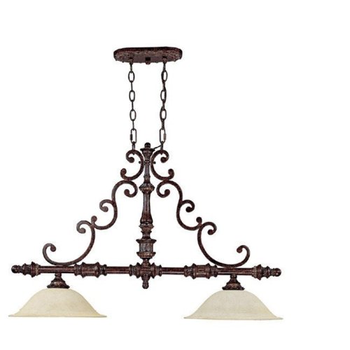 The Detailed Description of Capital Lighting 4152CB Chesterfield Collection 2-Light Island Fixture, Chesterfield Finish with Rust Scavo GlassFeatures