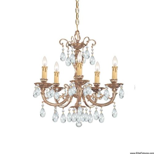 Finish:Olde Brass, Crystal:Swarovski Spectra, Light Bulb:(5)60w B10 Cand C Incand Etta 5-Light Chandelier Ornate cast brass frame with olde brass finish and adorns it with sparkling crystal accents to really make it stand out in any room