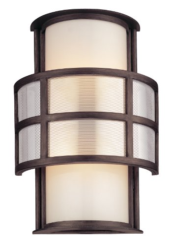 Troy Lighting B2732 Discus Collection 2-Light Indoor/Outdoor Wall Sconce features durable Hand-Worked Wrought Iron metalwork in a rich Graphite finish and Opal glass in a transitional design that will enhance any urban dwelling deep in the heart of a city or a rural farm in the heart of the country for a little updated charm that will be appreciated for many years to come. The B2732 is 9.75-Inch wide by 14-Inch high by 5-Inch extension. The B2732 comes one per package, includes a roof if used outside, and requires two 60-Watt medium base incandescent bulbs (not included), dimmable using a standard incandescent dimmer. Being a Leader in an Industry requires many attributes. Troy Lightings passion for quality, design, value and service lead the way. Troy Lightings lighting team produce awesome lighting and have a strong, well-run company. We strive to produce Interior and Exterior Lighting products that are unique in the marketplace. In fact, many of Troy Lightings Outdoor Lanterns are being used in Interior applications because the styles are so refreshing! Hand-Forged Iron, Hand Applied Finishes, Glass and Shades that compliment the style are primary ingredients in our products. Troy Lighting takes great pride in their engineering and inspection standards that ensure a quality product. Troy Lighting is committed to providing quality high styled products, at reasonable prices, backed with the highest standard of service.