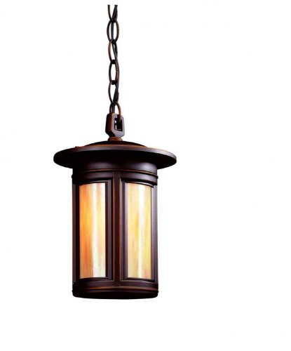 Troy Lighting FIH6913OB Highland Park Collection 1-Light Exterior Hanging Lantern features durable Solid Brass metalwork in an Oil Rubbed Bronze finish with Iridescent Honey glass in a traditional design that will enhance any urban dwelling deep in the heart of a city or a rural farm in the heart of the country for a little Craftsman charm that will be appreciated for many years to come. The FIH6913OB is 8-Inch wide x 11-Inch high. The FIH6913OB comes one per package, and requires one 100-watt medium base incandescent bulb (not included), dimmable using a standard incandescent dimmer. Being a Leader in an Industry requires many attributes. Troy Lightings passion for quality, design, value and service lead the way. Troy Lightings lighting team produce awesome lighting and have a strong, well-run company. We strive to produce Interior and Exterior Lighting products that are unique in the marketplace. In fact, many of Troy Lightings Outdoor Lanterns are being used in Interior applications because the styles are so refreshing. Hand-Forged Iron, Hand Applied Finishes, Glass and Shades that compliment the style are primary ingredients in our products. Troy Lighting takes great pride in their engineering and inspection standards that ensure a quality product. Troy Lighting is committed to providing quality high styled products, at reasonable prices, backed with the highest standard of service.