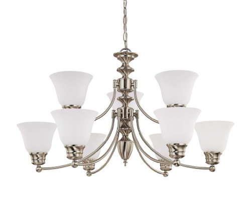 The Detailed Description of Nuvo Lighting 60/3306 Empire 9-Light 2-Tier Chandelier with Frosted Glass, Brushed NickelFeatures