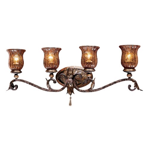 The Detailed Description of Metropolitan Sanguesa Collection N6074-194 4-Light Vanity Light, Sanguesa Patina Finish with Vidrio Artistico GlassFeatures