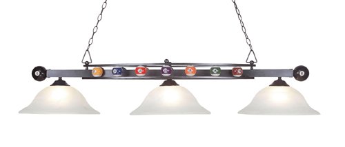 Finish:Gun Metal, Glass:White Faux Alabaster, Light Bulb:(3)100w A19 Med F Incand This island pendant is a great source of light over a pool table or other area in need of direct light and a modern touch.
