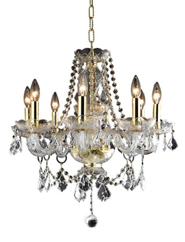 The Detailed Description of Elegant Lighting 7838D20G/RC Princeton 20-Inch High 8-Light Chandelier, Gold Finish with Crystal (Clear) Royal Cut RC CrystalFeatures