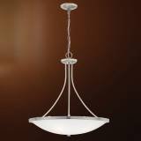 Finish:Satin Nickel, Shade:Frosted White Glass, Light Bulb:(8)60w A19 Med F Incand Blanko 8-Light Pendant Transitional collection of richly burnished metal bowls and flushes with opal glass.