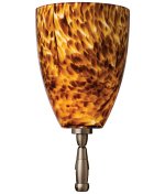 LBL's Monopoint System offer a variety of surface mount options for pendants and directional fixtures. Simply insert any Fusion Jack element (head or pendant) into any mating female Fusion Jack port, hand-tighten the threaded collar and your installation is complete. Italian opal and amber glass shade. Includes specified low-voltage lamp and 8' of field-cuttable suspension cable or 5.8 watt replaceable LED module and 6' of field-cuttable suspension cable. For use with 24 volt transformer, add suffix "-24" to item number (LED lamp option is not compatible with 24 volt transformers). Includes 4" Round Flush Canopy. Mounting options: Fusion Jack, Monopoint, Monorail, Two-Circuit Rail Color options: amber Finish options: bronze, satin nickel Glass Size: W 4.875", H 6.25"