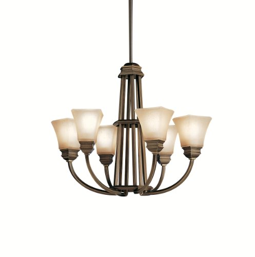 The Detailed Description of Kichler Lighting 1661OLZ Polygon 6-Light Chandelier, Oiled Bronze with Linen Textured GlassFeatures