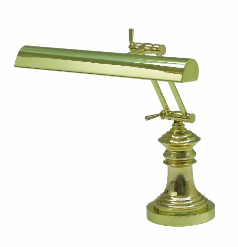 Piano desk lamps can provide plenty of light to easily read the notes on your sheet music. This handsome, traditionally styled piano desk lamp also looks great on writing desks, accent tables and more. In a lush polished brass finish. Shade swivels to direct light. Switch on base. 10 foot cord. 14" wide. 13 1/2" high.