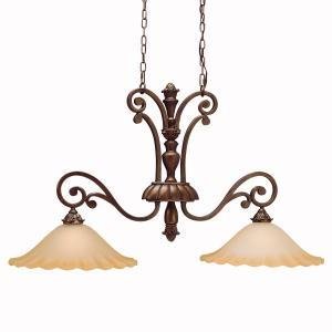 Light Bulb:(2)150w A21 Med F Incand, Finish:Parisian Bronze As our interior spaces continue to grow taller, the need to fill these areas does as well. Knowing this, Kichler has created this beautiful 2-light Island Light as part of the Cheswick Collection. The Cheswick Collection is a large family whose classic design elements include a nicely sized and beautifully contoured square tube with double scroll arms and trim for a regal profile. The warm light provided by Honey etched glass, makes this value-priced island light a high-end bargain. It uses 150-watt (max.) G-type lamp rec., measures 46' long by 18' in wide with a 25 ' body height, and comes complete with 55' of extra lead wire with 6' of chain.