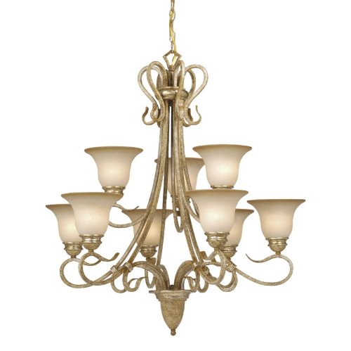 The Detailed Description of Vaxcel USA BECHU009CA Berkeley 9 Light Transitional Chandelier Lighting Fixture in Brass, GlassFeatures