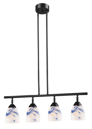 Finish:Dark Rust, Glass:Mountain Glass, Light Bulb:(4)60w A19 Med F Incand Celina 4-Light Linear Pendant Designed to showcase our many blown glass options, the Celina Collection utilizes a simplified frame that embellishes the shape and color of the glass. Includes: 2 - 6' Extension rods 4 - 12' Extension rods 2 Swivels