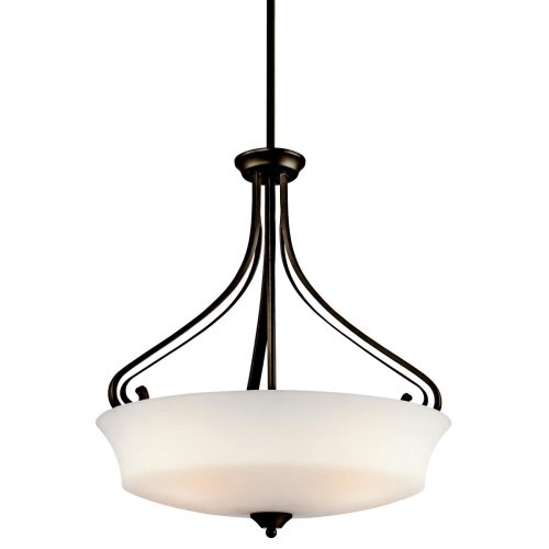Finish:Olde Bronze, Glass:Satin Etched White, Light Bulb:(3)100w A19 Med F Incand Versatility and gentile curves give the Wickham 3-light pendant its universal appeal.
