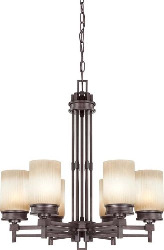 Wright prairie bronze six light chandelier with amaretto glass. (6) 60-Watt A19 medium base bulbs not included.