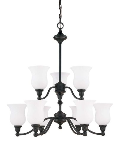 2 tier 9 light chandelier with satin white glass. (9) 60-Watt A19 medium base bulbs not included.