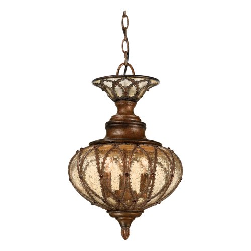 Light Bulb:(3)60w B10 Cand C Incand, Finish:Golden Umber Make your home a captivating oasis with this exotic design, which has a restrained Moroccan flavor. The intricate ornamentation includes cast metal filigree ribbons studded with amber jewels, which form diamond shape patterns that caress the light amber seedy glass.