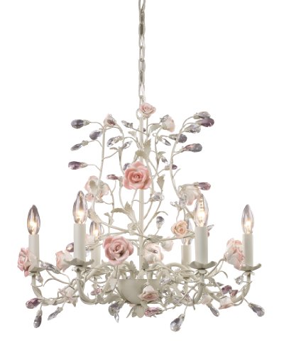 Finish:Cream, Crystal:Clear, Light Bulb:(6)60w B10 Cand C Incand This series is a tribute to England's first porcelain manufacturers dating back to the mid-18th century. Factories of the time developed product for the aristocratic market. Although many are no longer in operation, the techniques of hand working molds and patterns still apply today. The strength and non-porous nature of porcelain allow intricate details and shapes as evidenced in the exquisite flowers accenting this series. This collection has crystal accents and intertwined branches with rose accents.