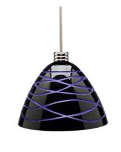 The Detailed Description of Alfa Lighting P206MPG-STN-BBE Art Glass Mambo Halogen Line Voltage Pendant, Satin Nickel with Black/Blue Etched GlassFeatures