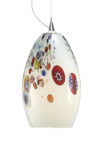 Mouth-blown Murano glass with millefiore glass fusion and silver flakes. 120V. Color options: blue, mocha, opal, red Finish options: satin nickel Size: W 7.0", H 9.5", Wall Projection 3.75" Ballast: High Electronic
