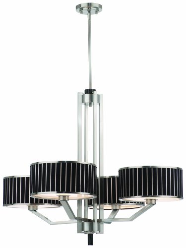 The Detailed Description of Thomas Lighting M2048-78 Haberdasher Four-Light 33-7/8-Inch W by 28-1/2-Inch H Chandelier, Brushed NickelFeatures