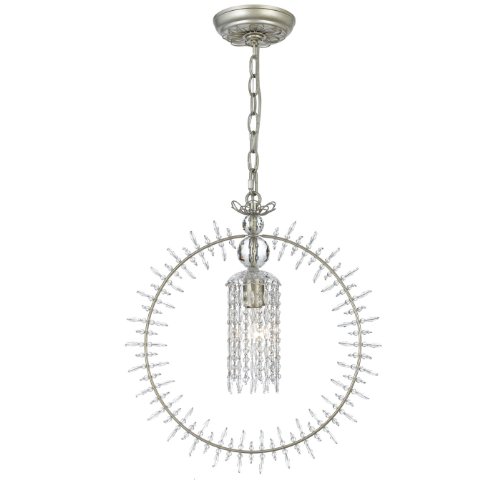 9820-SL Features: -Mini chandelier.-Leaf design.-Sphere shaped.-Draped with clear hand cut crystal.-Hand polished.-UL listed. Construction: -Steel construction. Color/Finish: -Silver leaf finish. Specifications: -Accommodates (1) 60W medium base incandescent bulb. Dimensions: -Chain length: 72''.-Wire length: 120''.-Overall dimensions: 19.5'' H x 18'' W.