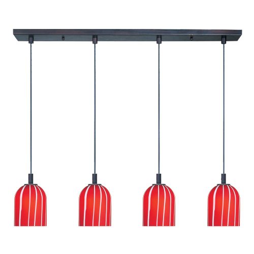 Finish:Bronze, Glass:Red Stripe, Light Bulb:(4)50w T4 G9 120v Xenon Dabble in the art of design by creating a custom collection without an equal.Complete the unique creation with a dizzying of glass selections. Choice lighting just took on a whole new meaning. Adjustable height Slope ceiling compatible