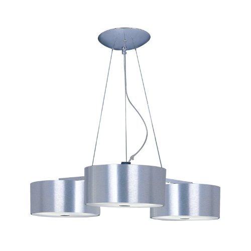 ET2 E22703-77 Percussion 9-Light Pendant Brushed Aluminum Drums of brushed aluminum affixed to a gleaming chrome bar make a simple, yet bold statement in any room. Elevating the industrial look to an art form, these minimalist cylinders balance the masculine qualities of texture and scale with stylish lines and soft light from energy-saving fluorescent bulbs that resonate in any decor.