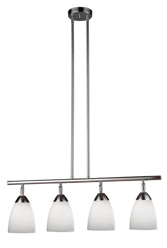 Finish:Polished Chrome, Glass:Simple White Glass, Light Bulb:(4)60w A19 Med F Incand Celina 4-Light Linear Pendant Designed to showcase our many blown glass options, the Celina Collection utilizes a simplified frame that embellishes the shape and color of the glass. Includes: 2 - 6' Extension rods 4 - 12' Extension rods 2 Swivels