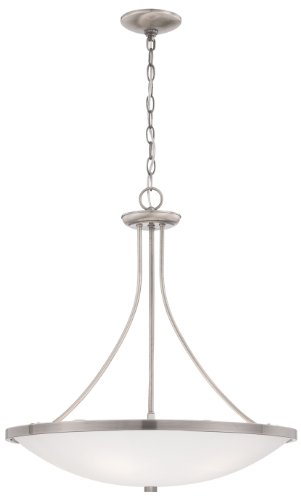 Finish:Satin Nickel, Shade:Frosted White Glass, Light Bulb:(5)60w A19 Med F Incand Blanko 5-Light Pendant Transitional collection of richly burnished metal bowls and flushes with opal glass.