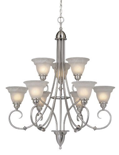 The Detailed Description of Vaxcel USA OMCHU009SN Omni 9 Light Transitional Chandelier Lighting Fixture in Nickel, GlassFeatures