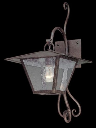 Troy Lighting B2951 Potter Collection 1-Light Exterior Wall Lantern features Hand-Forged Iron metalwork in a rustic Fired Iron finish and Seeded glass in a transitional design with an organic feel that will enhance any urban dwelling deep in the heart of a city or a rural farm in the heart of the country for a little updated charm that will be appreciated for many years to come. The B2951 is 11-Inch wide by 33.25-Inch high (or 22-Inch high with use of the short tail included) by 13-Inch extension. Center to top is 9.5-Inch. The B2951 comes one per package, and requires one 100-Watt medium base incandescent bulb (not included), dimmable using a standard incandescent dimmer. Being a Leader in an Industry requires many attributes. Troy Lightings passion for quality, design, value and service lead the way. Troy Lightings lighting team produce awesome lighting and have a strong, well-run company. We strive to produce Interior and Exterior Lighting products that are unique in the marketplace. In fact, many of Troy Lightings Outdoor Lanterns are being used in Interior applications because the styles are so refreshing! Hand-Forged Iron, Hand Applied Finishes, Glass and Shades that compliment the style are primary ingredients in our products. Troy Lighting takes great pride in their engineering and inspection standards that ensure a quality product. Troy Lighting is committed to providing quality high styled products, at reasonable prices, backed with the highest standard of service.