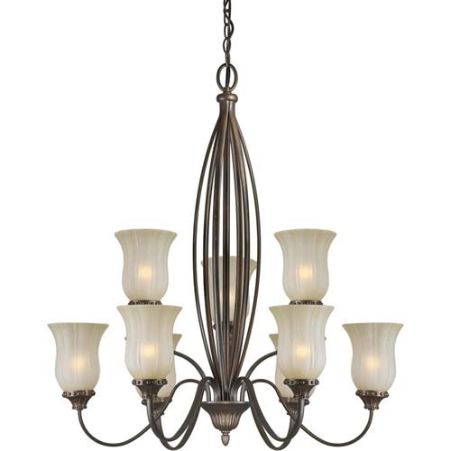 The Detailed Description of Forte Lighting 2333-09-32 9-Light Traditional Chandelier, Antique Bronze Finish with Umber Mist GlassFeatures