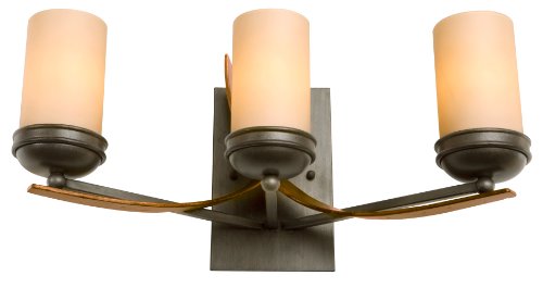 The Detailed Description of Varaluz 112B03C Aizen 3-Light Bath Light, Hammered Ore Finish with Tan Opal Glass Shades, 20-1/2-Inch by 10-Inch by 9-InchFeatures